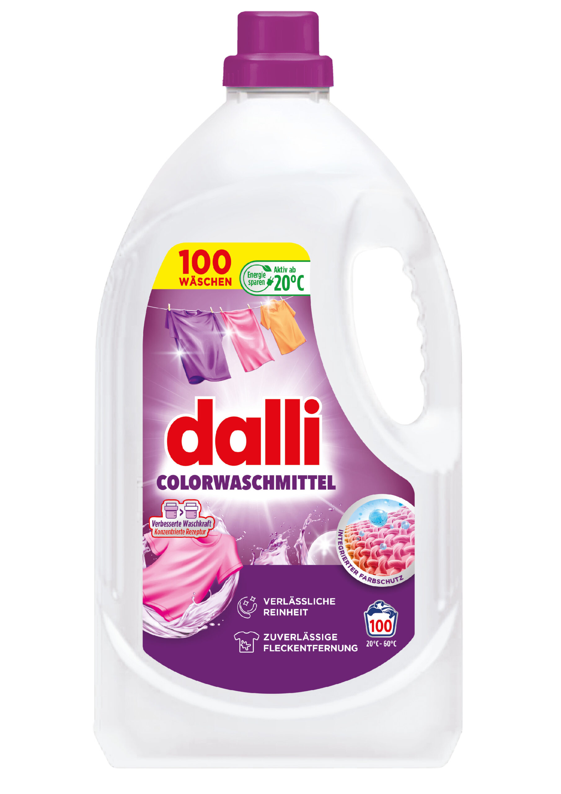 Dalli Color je tekutý prací prostředek z Německa, který si zakládá na účinnosti, jemnosti a vysoké koncentraci. Je určen pro praní barevného a pestrého prádla, kterému dodává nejen důkladnou čistotu, ale i ochranu před ztrátou barvy. Jeho speciální složení proniká hluboko do vláken a odstraňuje i zaschlé skvrny – a to vše bez zbytečného drhnutí nebo předpírky. Gel se rychle rozpouští, nezanechává zbytky a je ideální pro moderní prací programy i šetrné cykly.