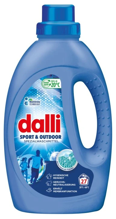 Dalli Sport Outdoor je speciální prací gel na praní sportovního oblečení. Účinný již od 15°C.