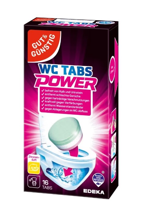 WC tablety působí proti nepříjemnému zápachu, odstraňují vodní kámen, nečistoty a usazeniny. Silně působí proti nežádoucímu zbarvení toalety a usazeninám ve WC odpadu. Zanechávají příjemnou citrusovou vůni