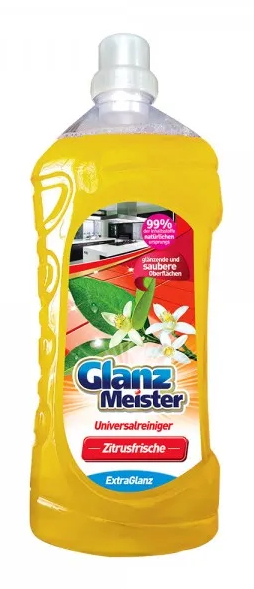 Vysoce účinný, univerzální čistič povrchů GlanzMeister! Univerzální prostředek na čištění podlah z keramiky, kamene, dřeva, PVC. Účinně odstraňuje nečistoty a zanechává příjemnou a dlouhotrvající vůni Produkt zanechává povrchy čisté a lesklé,