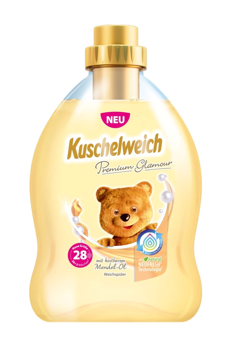 Kuschelweich 750 ml aviváž Premium Glamour- dopřejte si dotek elegance od Kuschelweich Premium Glamour! Dopřejte si tuto velmi zvláštní a luxusní vůni s macadamovým olejem, kterou vytvořili přední světoví parfumeři. Dává oblečení luxusní eleganci a vytváří jedinečnou kombinaci vysoce kvalitních surovin, vaše prádlo bude měkké až plyšové.