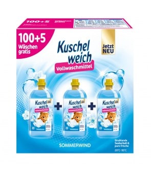 Originální německý prací prostředek Kuschelweich Sommerwind. Velmi dobře máchá, účinně odstraňuje odolné skvrny, chrání jemné látky před žmolkováním, díky čemuž budou dlouho vypadat jako nové. Udržuje oblečení čerstvé až 8 týdnů a dodává mu krásnou vůni.