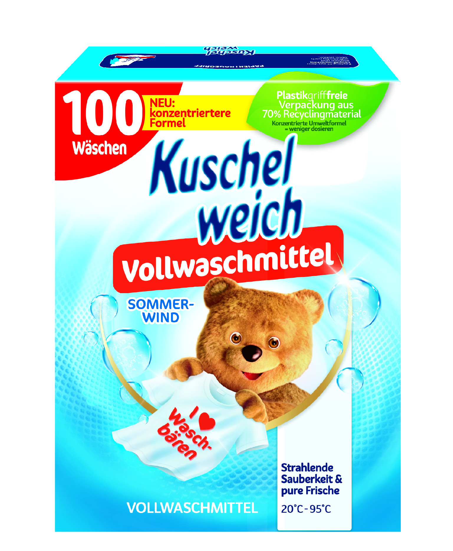 Kuschelweich prací prášek 100 dávek Sommerwind 5 kg pro měkké prádlo. Zářivá čistota a čistá svěžest. S aktivní schopností odstraňovat skvrny od teploty praní 20 ° C. Vhodný pro vaše bílé a stálobarevné prádlo, je obzvláště šetrný k vláknům a okouzlí vás nebeskou plyšovou jemnou letní vůní větru.