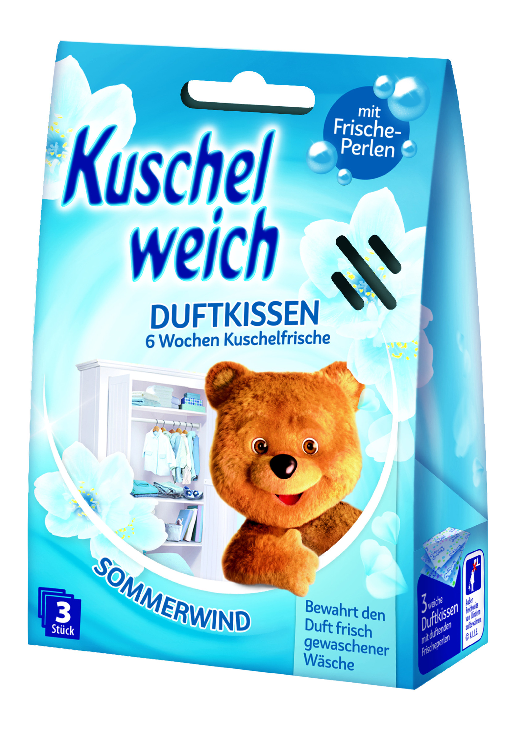 Kuschelweich vonné sáčky Sommerwind 3ks - modré. Tři měkké polštářky s vonnými svěžími perlami přinášejí do Vašeho šatníku letní vůni na dlouhých šest týdnů.