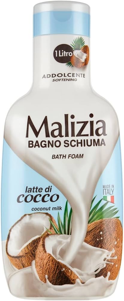 Malizia krémová koupelová a sprchová pěna s vůní kokosového mléka - 1l skvělá italská krémová koupelová a sprchová pěna. Nová péče o pokožku při koupeli. Tato koupelová a sprchová pěna se může použít jako běžná pěna do koupele nebo jako sprchový gel v případě koupele ve sprchovém koutě. Vytváří bohatou a krémovou pěnu, která pečuje o pokožku. Pěna je oproti sprchovému gelu trochu tekutější a při sprchování je možné ji dávkovat ve větších dávkách.