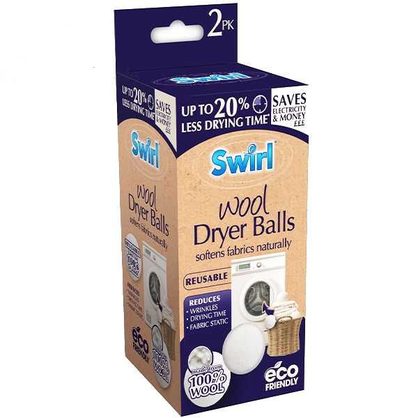 Swirl Wool Balls ekologické míčky do sušičky ze 100% vlny - 2ks.Sušicí vlněné míčky pomohou zkrátit dobu sušení až o 20% zvedáním a oddělováním prádla, což umožňuje horkému vzduchu lépe cirkulovat a rychleji sušit. Ušetříte čas a elektřinu! Zdravá alternativa k sušičkám a běžným plastovým míčkům bez chemikálií. Opakovaně použitelné a ekologické. Vydrží až 500 praní. Do míčků je možné také aplikovat Váš oblíbený parfém do sušičky nebo éterický vonný olej. Stačí nakapat na míček a počkat nežli se tekutina vsákne, následně vložit do sušičky. Po usušení míček vyndejte a nechte větrat. Nepoužívejte do pračky!100% vlna zkracuje dobu sušení Jemně přirozeně změkčuje oblečení Vydrží 500 umytí!Možnost aplikovat vůni do sušičky nebo parfém2 ks v balení
