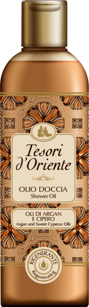 Tesori d´Oriente sprchový olej pomáhá přeměnit každodenní rutinu a stres na očistný potěšující rituál. Hedvábný sprchový olej s jemnou olejovou texturou se při kontaktu s vodou promění v bohatou a hedvábnou pěnu, která zanechává vaši pokožku vyživenou, regenerovanou a sametově hladkou. Jeho opojná vůně navodí příjemný pocit uvolnění a relaxace. Tesori d´Oriente sprchový olej se vzácnou kombinací arganového a šáchorového oleje vaši pokožku jemně čistí a pečuje o ni
