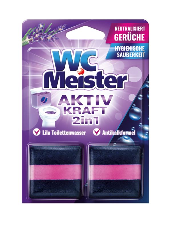 Hlavní stránka > Úklid domácnosti > WC > WC Meister kostka do splachovače 2x50g – vůně levandule