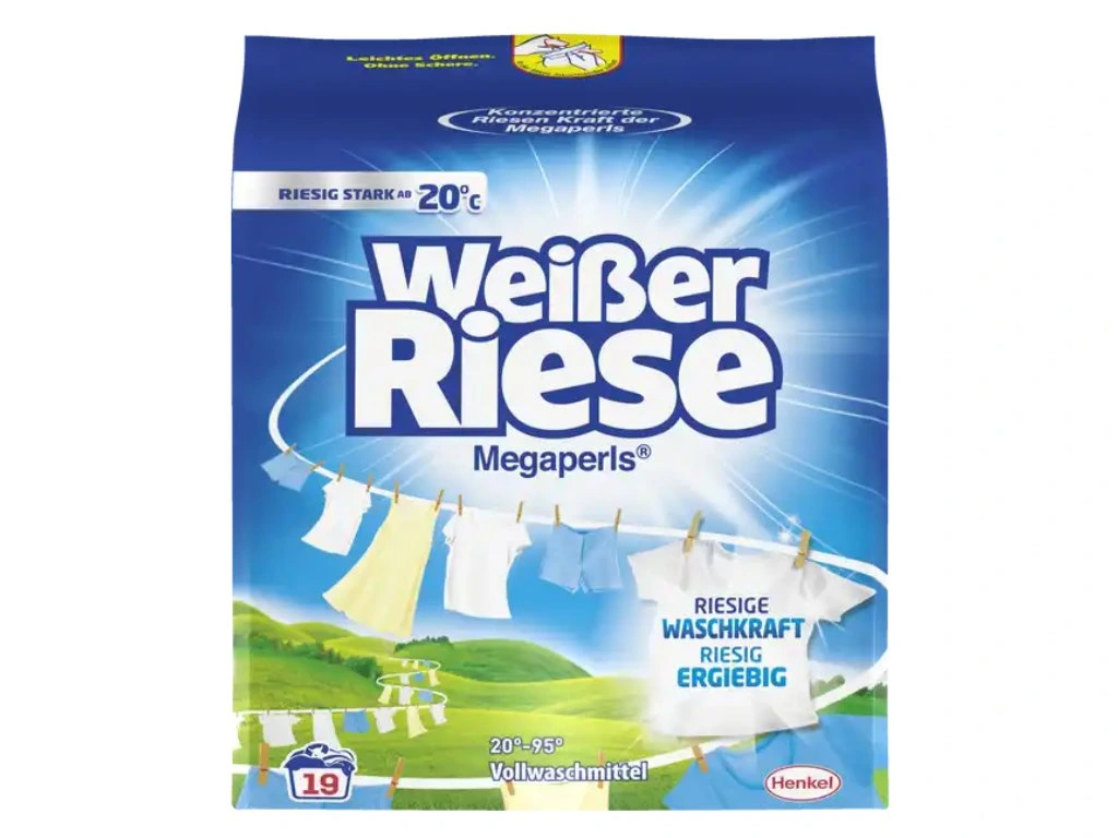Vysoce koncentrovaný univerzální prací prášek na bílé a stálobarevné prádlo s vysoce účinnou schopností odstraňování skvrn. Prací prášek od značky Weisser Riese je v Německu jeden z nejoblíbenějších díky své silné čistící schopnosti a krásné svěží vůni. Navíc obsahuje formuli Flecken-Detektiv, což je funkce, která odstraňuje i silně znečištěné fleky na prádle. Účinné prací teploty: 20 - 95°C. Pro zářivě čisté a svěží prádlo beze skvrn a bez zašednutí každý den.